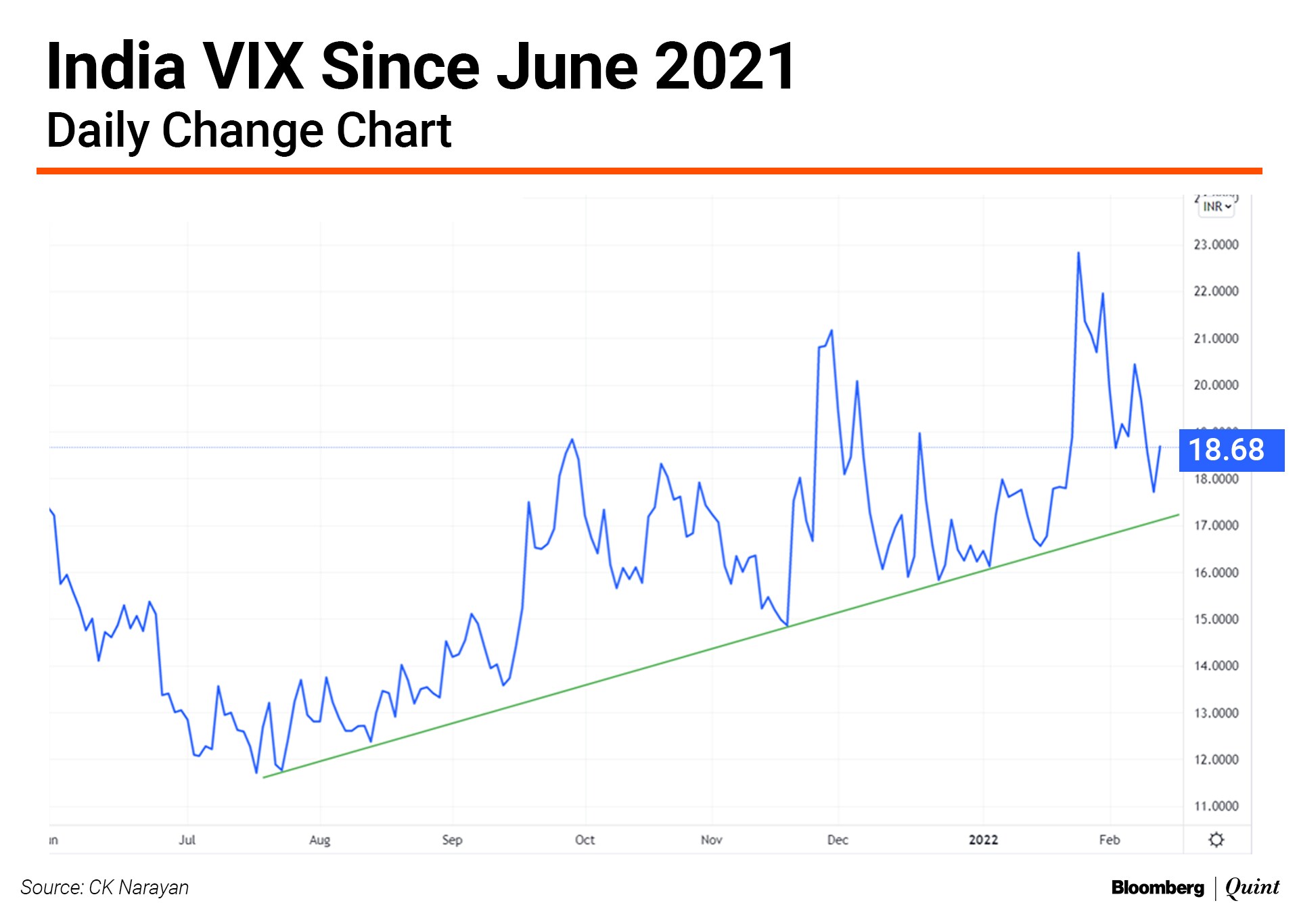In the last week, they have been net long. So, the expected is happening. But once parity of sorts is restored between shorts and longs, the moves stop, until some new reason emerges. We are probably near those points and hence the slowing of the trend and the tendency towards continued ranging. The India VIX has also dropped and we can note in the next chart that a support trendline on the daily VIX chart is set to break if levels drop below 17 ahead. It may be something to watch, as this may signal a better bullish environment getting created. Right now, the fear element can only be said to be receding and not completely gone.