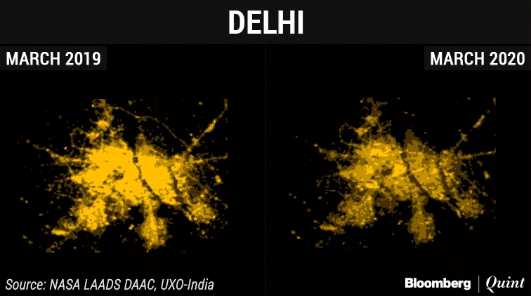 - In Mumbai, night light radiance fell to 29 nW/cm²/sr in the same duration, a drop of 26.8 percent compared to last year.