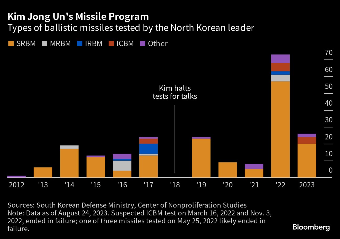 North Korea had already fired 24 ballistic missiles so far this year, which included four ICBMs. The country fired off more than 70 ballistic missiles last year, a record for the state.