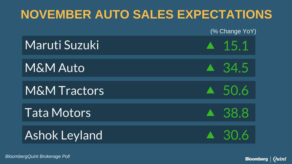 Automakers including Maruti Suzuki, Ashok Leyland and Bajaj Auto reported strong sales growth in November, aided by low base effect. Exports boost Eicher Motors' sales.