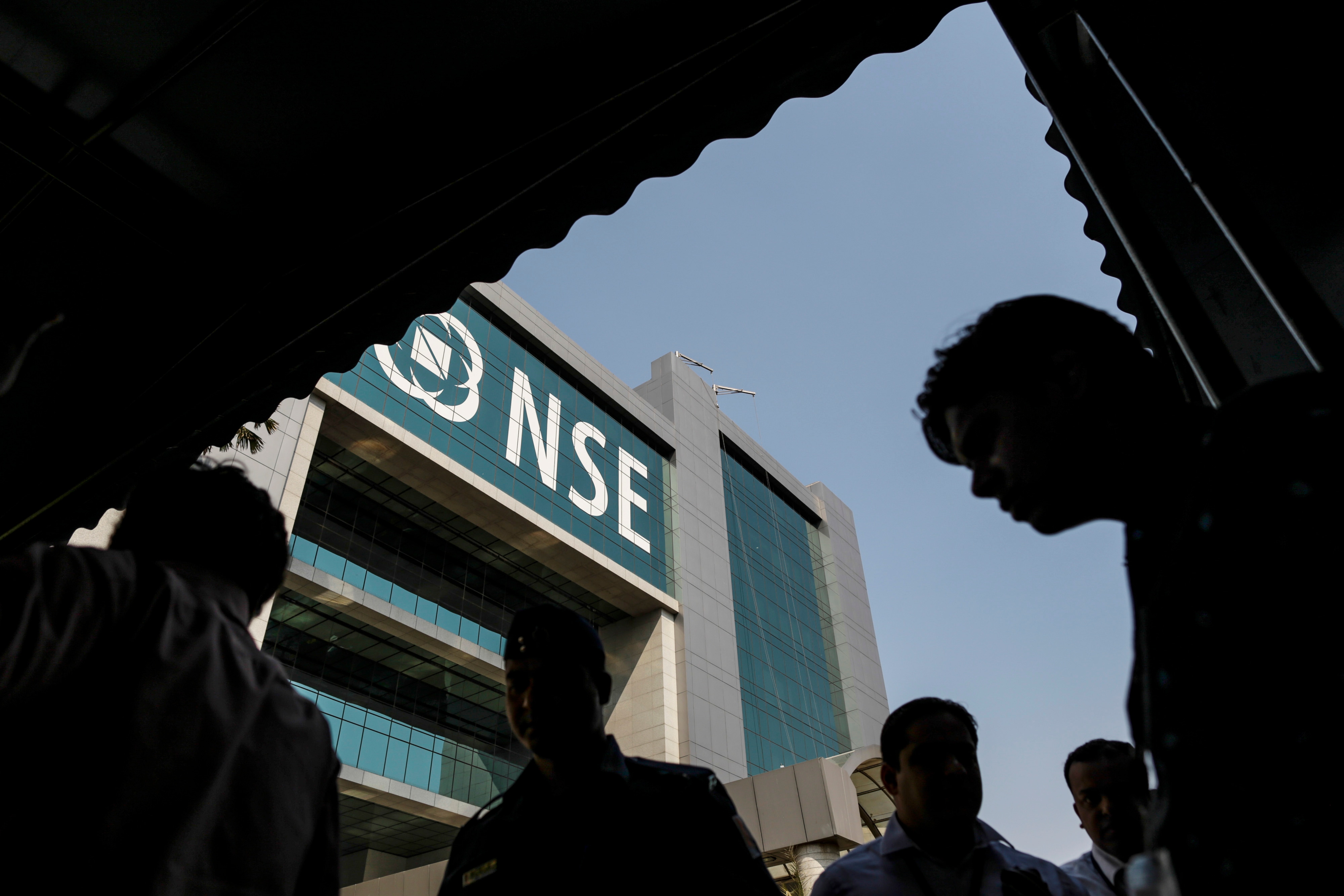 Employees pass though a security check at the National Stock Exchange (NSE) in Mumbai, India (Photographer: Dhiraj Singh/Bloomberg)