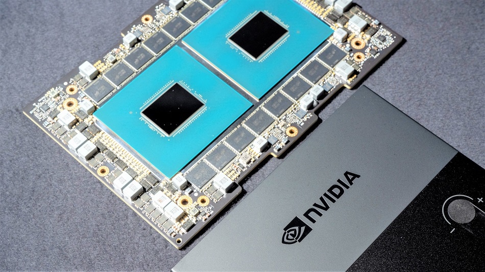A Nvidia Corp. HGX H100 artificial intelligence supercomputing graphics processing unit.
