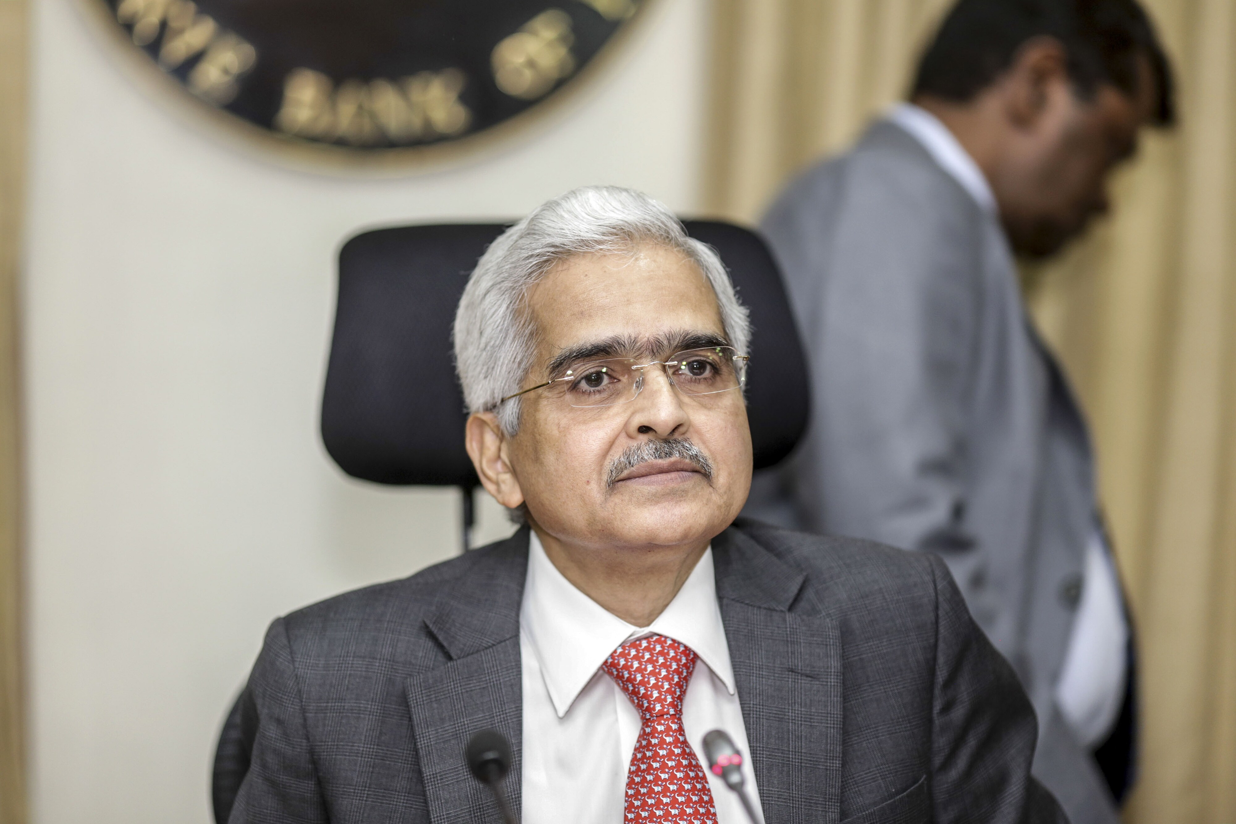 Shaktikanta Das, governor of the Reserve Bank of India, attends a news conference in Mumbai, India. (Photographer: Dhiraj Singh/Bloomberg)