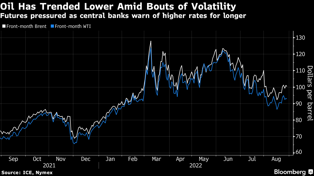 Crude is on course for a third straight monthly drop on concern global growth will slow as central banks tighten policy aggressively, hurting consumption. To counter that weakness, Saudi Arabia raised the possibility last week that the Organization of Petroleum Exporting Countries and its allies could cut output, drawing support from fellow members. The cartel will meet Sept. 5 to consider production levels for October and to review the outlook for the rest of the year.