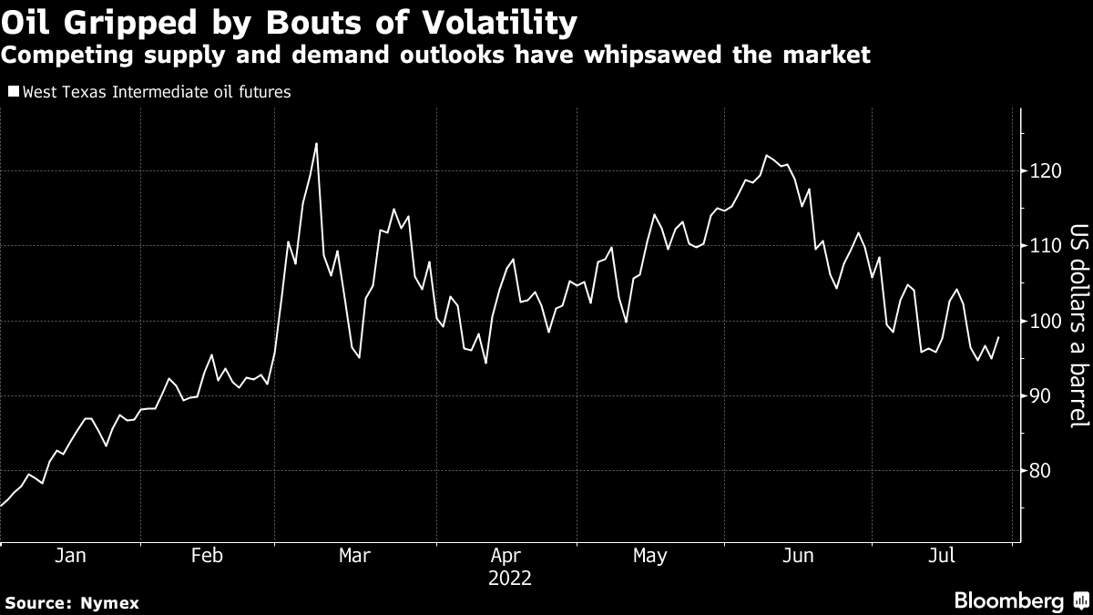 Oil has jumped more than 25% since the start of the year, although the bulk of the gains triggered by Russia's invasion of Ukraine have been reversed. The supermajor oil explorers such as Shell Plc and Exxon Mobil Corp. are scheduled to report second-quarter earnings this week that will show bumper profits after energy prices surged.