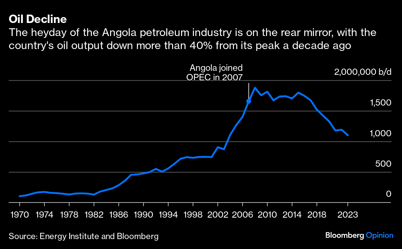 Whether inside or outside OPEC, the heyday of Angola's petroleum industry is behind it. As such, its exit mirrors the limited impact of previous departures. Indonesia, Qatar and Ecuador haven't altered the global supply and demand balance since they quit the organization.