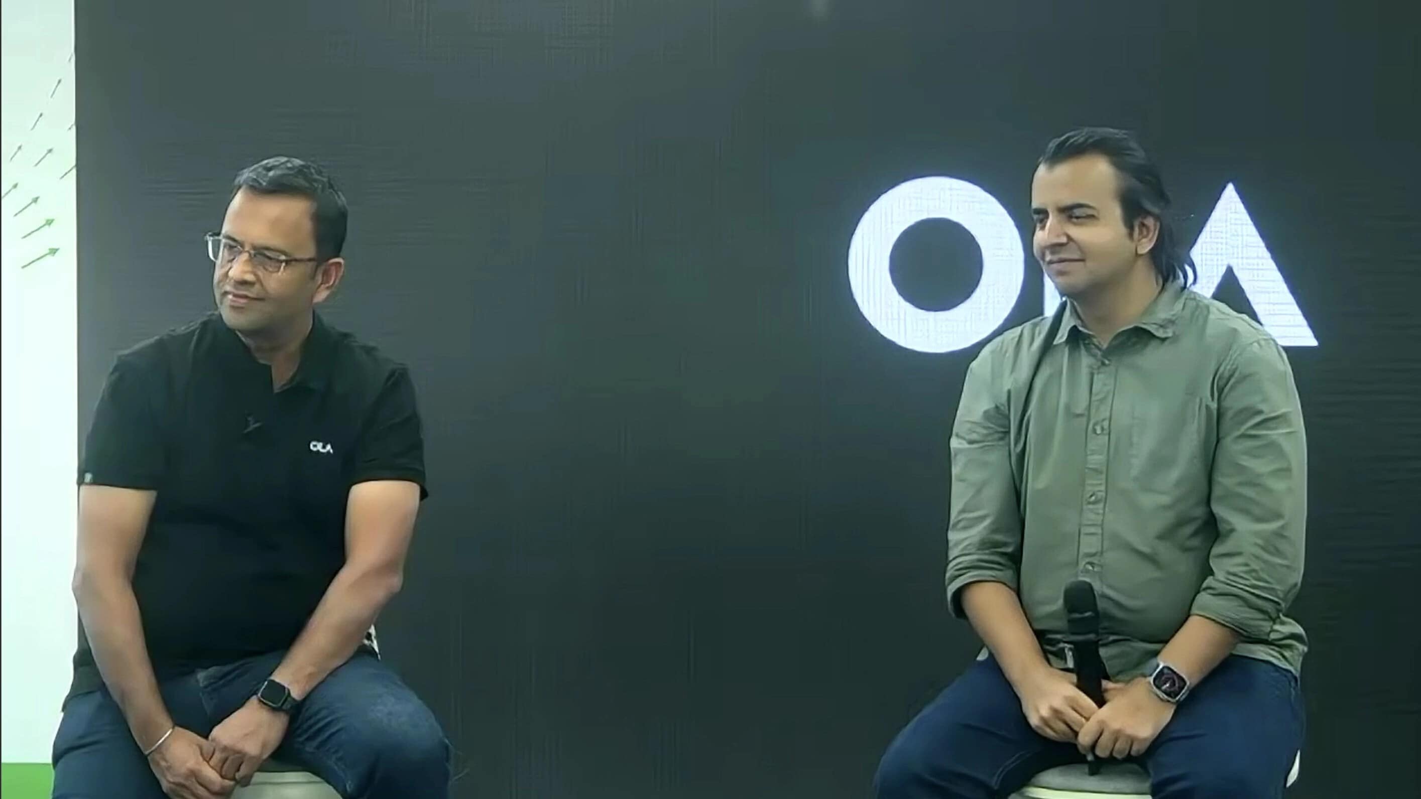 Ola's Hemant Bakshi and Bhavish Aggarwal. (Source: Screengrab from press conference/NDTV Profit)