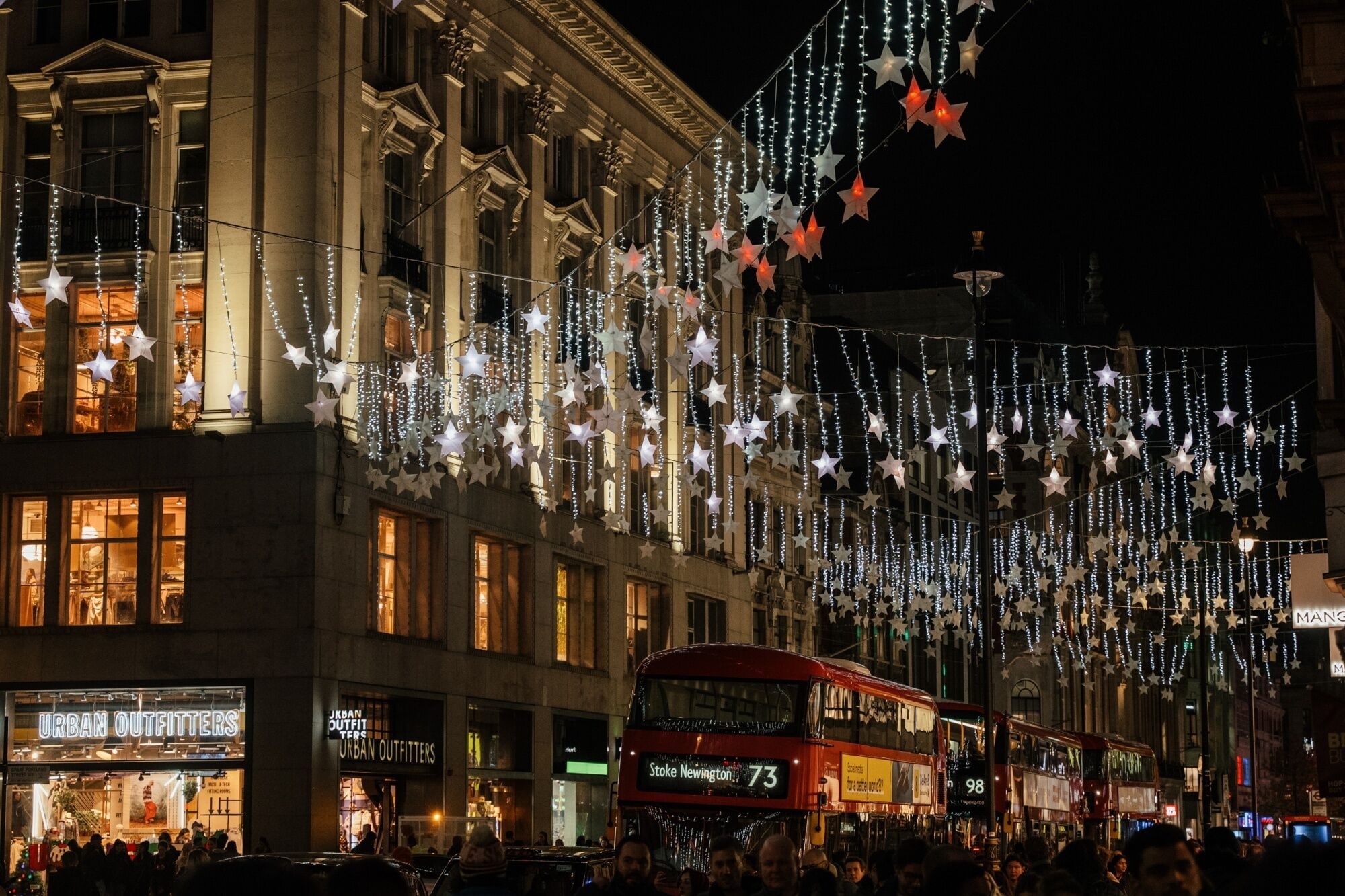 Illuminated Christmas lights along Oxford Street in London, UK, on Wednesday, Nov. 23, 2022. (Photographer: Jose Sarmento Matos/Bloomberg)