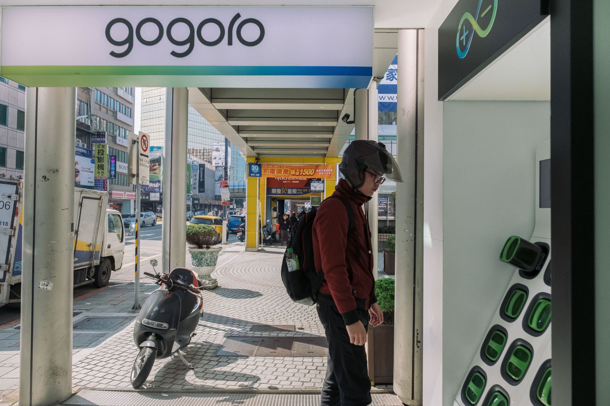 That's because Gogoro Inc., the Taipei-based company that sold Hsiao his moped, lets him swap out its two batteries as often as he likes for up to 630 kilometers (392 miles) of driving each month, all for a subscription fee of 849 new Taiwan dollars ($27.80). Every weekday, as the 26-year-old university administrator rides to work in Taiwan's Hualien city, Hsiao's app identifies the nearest swapping station with charged batteries in stock. Once there, he pulls out his moped's depleted batteries and inserts them into a vending-machine-like device, which then distributes fresh ones. Within 60 seconds, he's on the road again with 40 miles of new range.