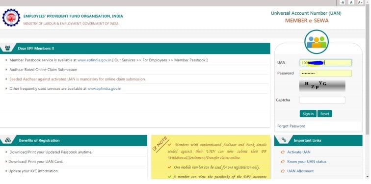 1: The member logs in through his or her UAN and password on the Member Interface of the Unified Portal. A link to this portal is given here.