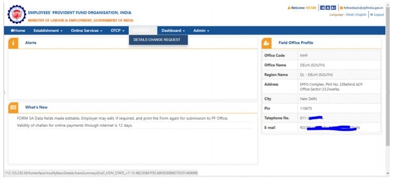 9. After approval of request by the employer, the request will appear as a task in the login of Dealing Hand (concerned person of the EPFO office) in the Field Office Interface of Unified Portal.
