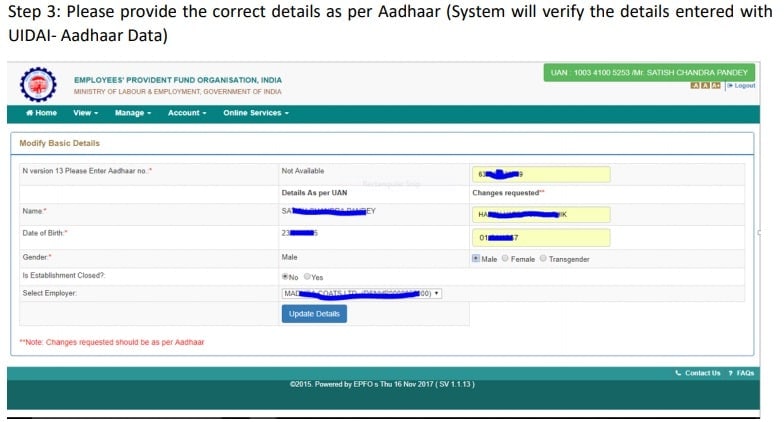How EPF Members Can Correct Basic Details Online - via UAN and Aadhaar number