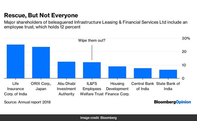 The irony is that the same Life Insurance Corp. may now have to lead the rescue of IL&FS before the money market's exposure to its toxic debt deepens a liquidity crisis for other shadow banks - a sort of a mini-Lehman moment for India. However, it would only be fitting to wipe out the 12 per cent stake held in IL&FS  by the employees' welfare trust. The employees seem to have fared very well: Parthasarathy took home $3.65 million in his last year.