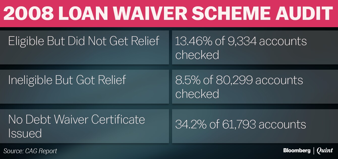 N Srinivasan, who was chief general manager at NABARD when the 2008 scheme was conducted, said the scheme had not been designed well. In an article published by the College of Agricultural Banking in 2008, Srinivasan had pointed out that the waiver failed “the test of equity by a large margin”. He sticks by that analysis even today. In a phone conversation with BloombergQuint, Srinivasan said the design of a loan waiver scheme leaves a number of aspects unaddressed.