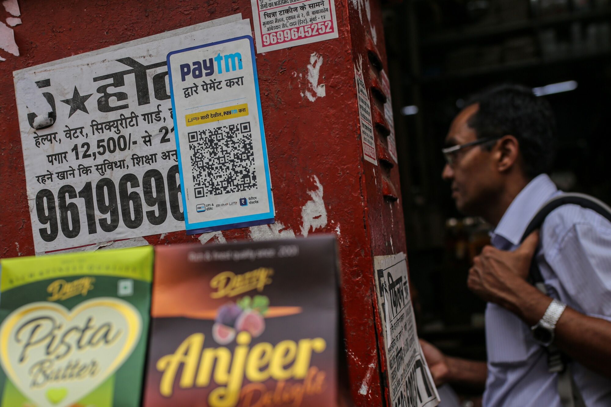A QR code for the PayTM digital payment system at a store in Mumbai, India, on Saturday, Jan. 7, 2023. India is scheduled to release consumer price index (CPI) figures on Jan. 12.