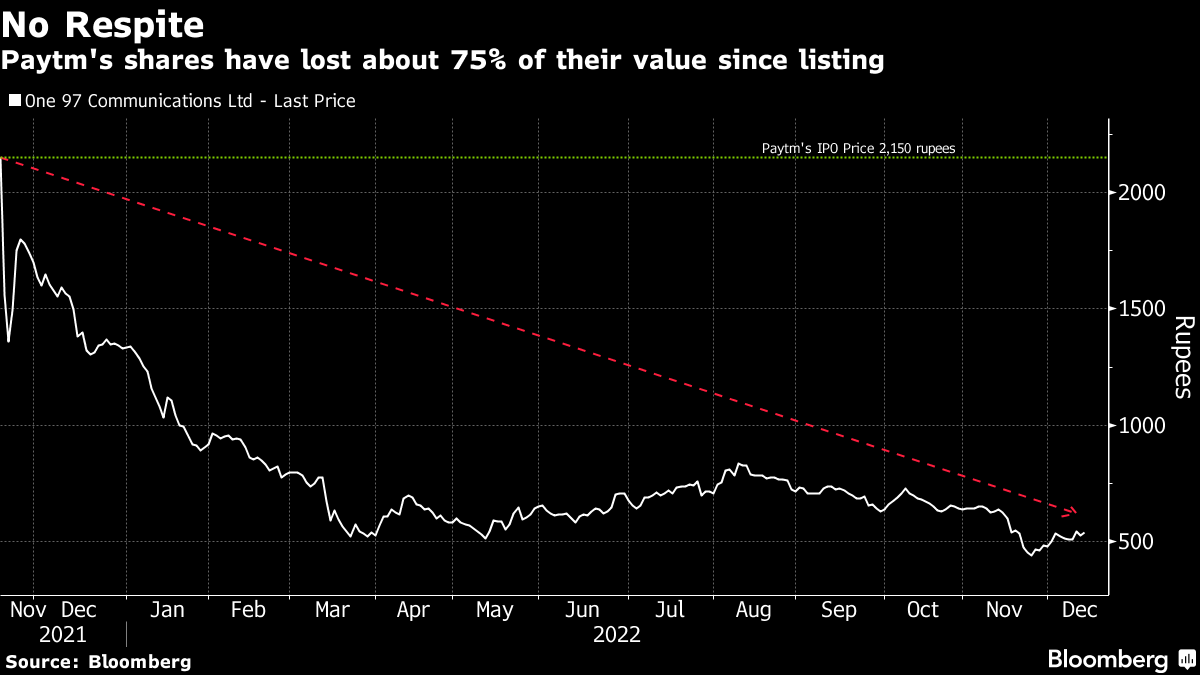 The board of One 97 Communications Ltd., the listed-entity that runs Paytm, will decide on the buyback on Tuesday. The move comes as the stock has plunged about 75% since its listing last November to emerge as the world's worst-performing large initial public offering in a decade. The slump also prompted a unit of Japan's SoftBank Group Corp. — a key backer — to trim its holding.