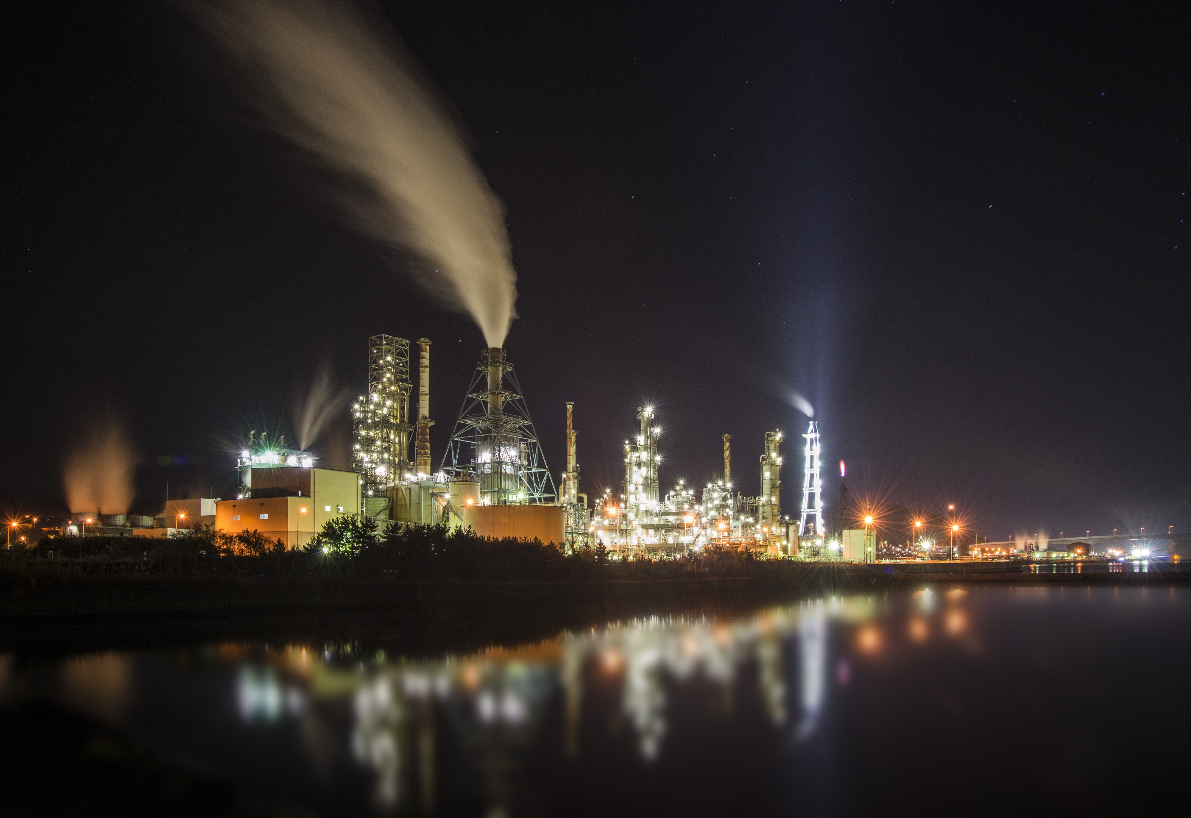 An illuminated petrochemical plant at night. (Photographer: Eiji Ohashi/Bloomberg)