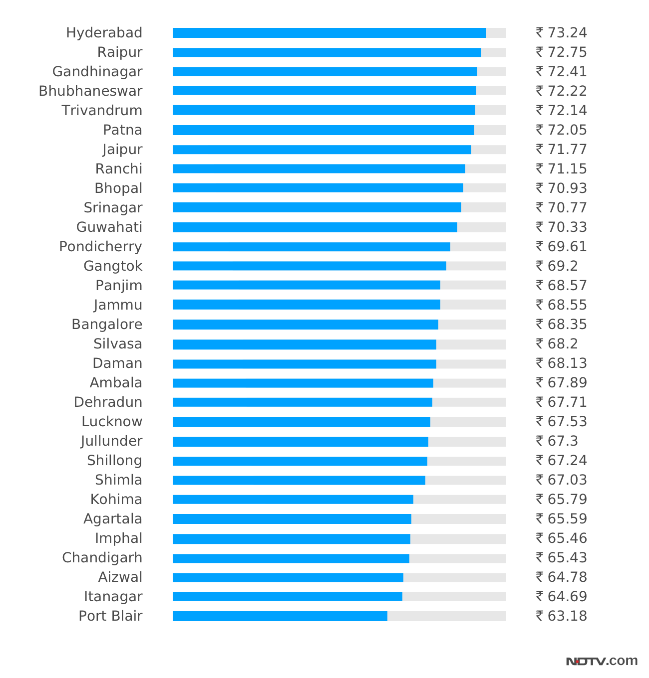 In Delhi, petrol is now being sold (same as yesterday's price) for Rs 75.55 a litre, Rs 78.23 a litre in Kolkata, Rs 82.99 a liter in Mumbai and Rs 78.40 in Chennai. Similarly, diesel is being sold for Rs 67.38 in Delhi, Rs 69.93 in Kolkata, Rs 71.49 in Mumbai and Rs 71.12 in Chennai. Oil marketing companies (IOC, HPCL BPCL) revise the prices of petrol, diesel on a daily basis. The daily prices are made effective from 6 am.