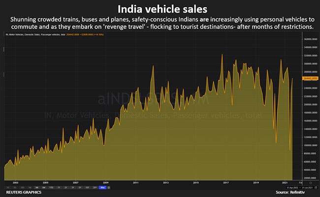 Shunning trains, buses and planes, safety-conscious Indians are buying more cars and increasingly using personal vehicles to commute as they embark on 'revenge travel' - flocking to tourist destinations after months of restrictions, despite record high fuel prices.