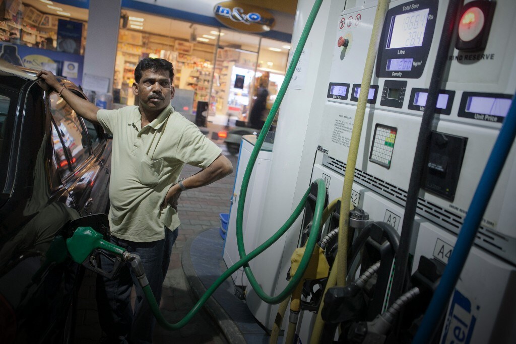A man refuels a vehicle at a petrol pump, New Delhi. (Prashanth Vishwanathan/Bloomberg)