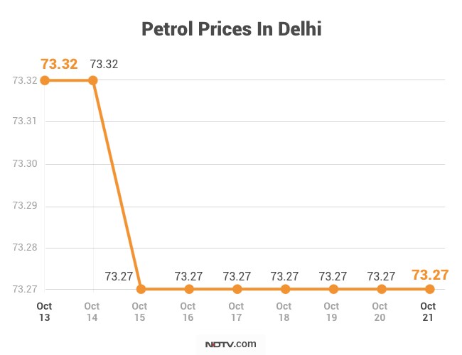 Domestic fuel prices remained unchanged at existing prices on Monday, marking a sixth straight pause in petrol rates across metros. With effect from 6 am on October 21, the price of petrol was Rs 73.27 per litre in Delhi and Rs 78.88 per litre in Mumbai - the same levels as Sunday, according to notifications from Indian Oil Corporation (IOC). The rate of diesel stood at Rs 66.17 per litre and Rs 69.35 per litre in the two metros respectively, according to Indian Oil Corporation - the country's largest fuel retailer.