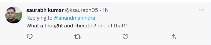 In response to his tweet, one user replied saying, ‘What a thought and liberating one at that'.