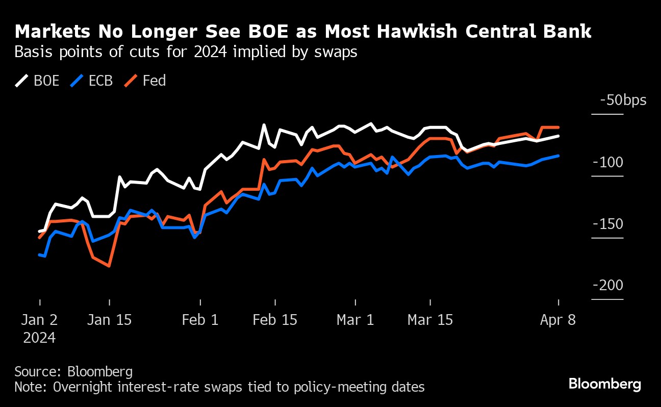 Strategists and fund managers at Jupiter Asset Management, Pictet Asset Management and Candriam say markets are still underpricing the chances of the BOE delivering faster and deeper rate cuts than its major counterparts. While the odds of a reduction at its May meeting are about one in five, market pricing still suggests UK officials will lag behind the European Central Bank.