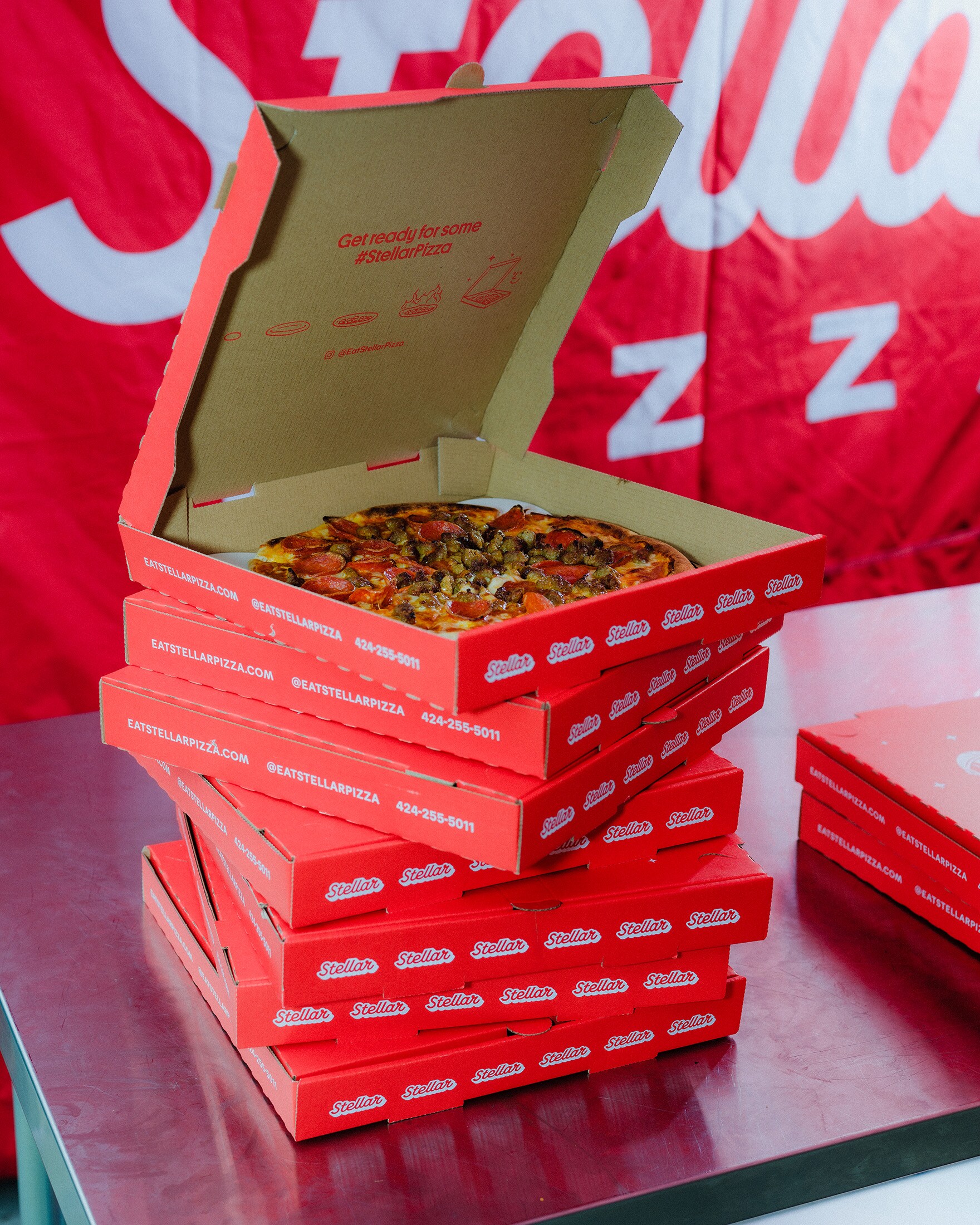 A view of the Stellar Pizza truck in Hawthorne, CA. December 2022.