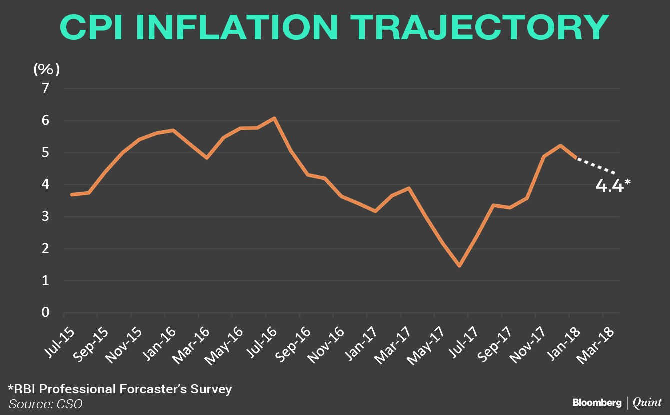 Rising oil prices, and the higher minimum support prices for kharif crops announced in the union budget may push inflation up and have "increased the probability of higher rates in 2018-19", said Abheek Barua, chief economist at HDFC Bank in an emailed statement. Household inflation expectations, something that the MPC watches closely, are also ticking up again, pointed Axis Bank in a report. The inflation trajectory may move up over the next 5-6 months, it added.