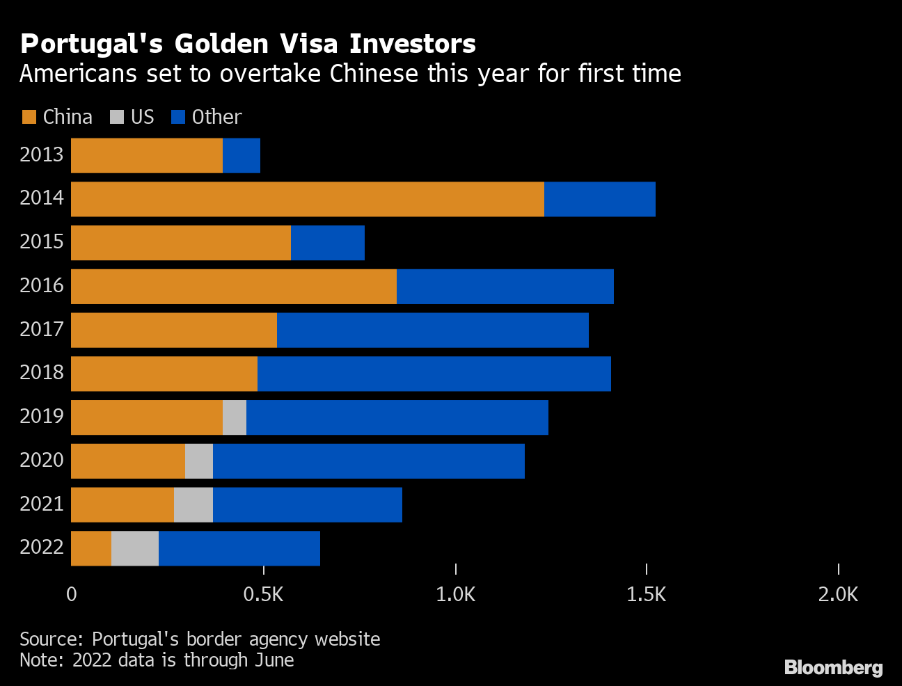 The dual pressure is putting the once-popular programs in jeopardy continent-wide, with 2022 shaping up to be the first year in which Chinese investors aren't the biggest group getting Portugal's golden visas. It leaves wealthy Chinese with dwindling options and business leaders and real estate brokers in Portugal with a shrinking source of reliable foreign investment.