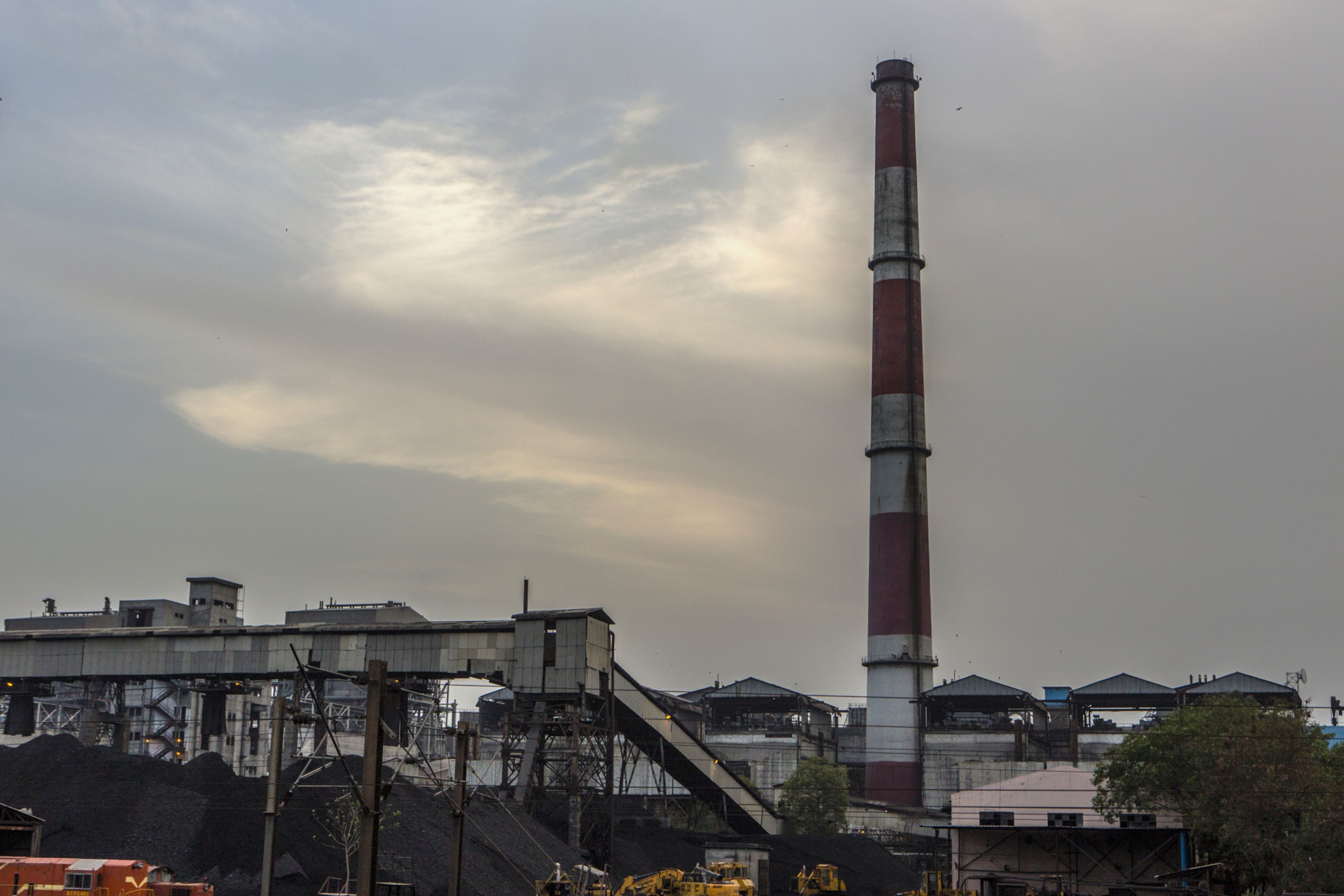 Piles of coal and a smokestack stand at the coal-fired NTPC Ltd. (Photographer: Prashanth Vishwanathan/Bloomberg)