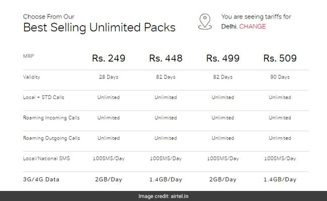Airtel's popular prepaid recharge plans, according to its website, airtel.in