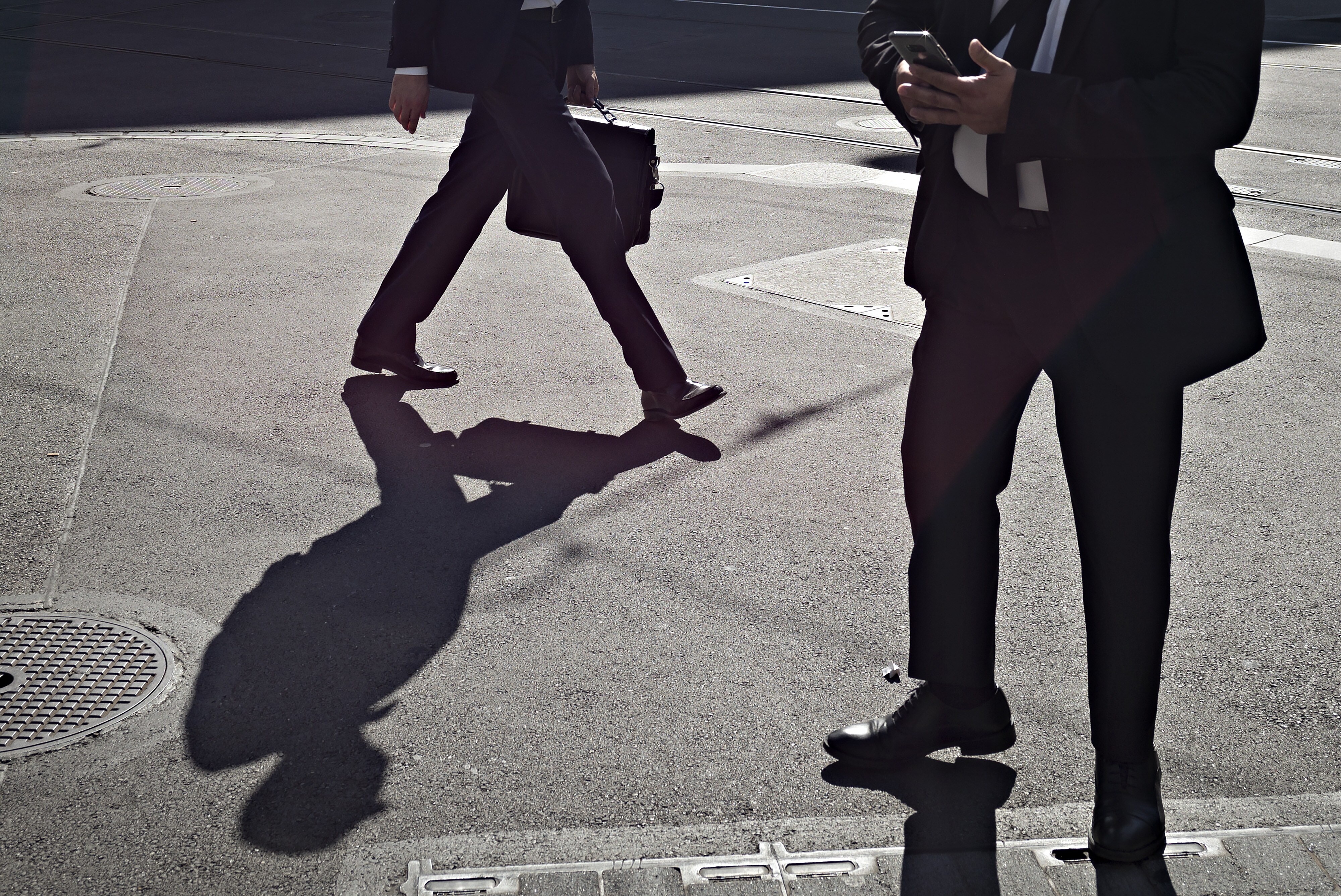 A banker casts a shadow as he walks. (Photographer: Michele Limina/Bloomberg)
