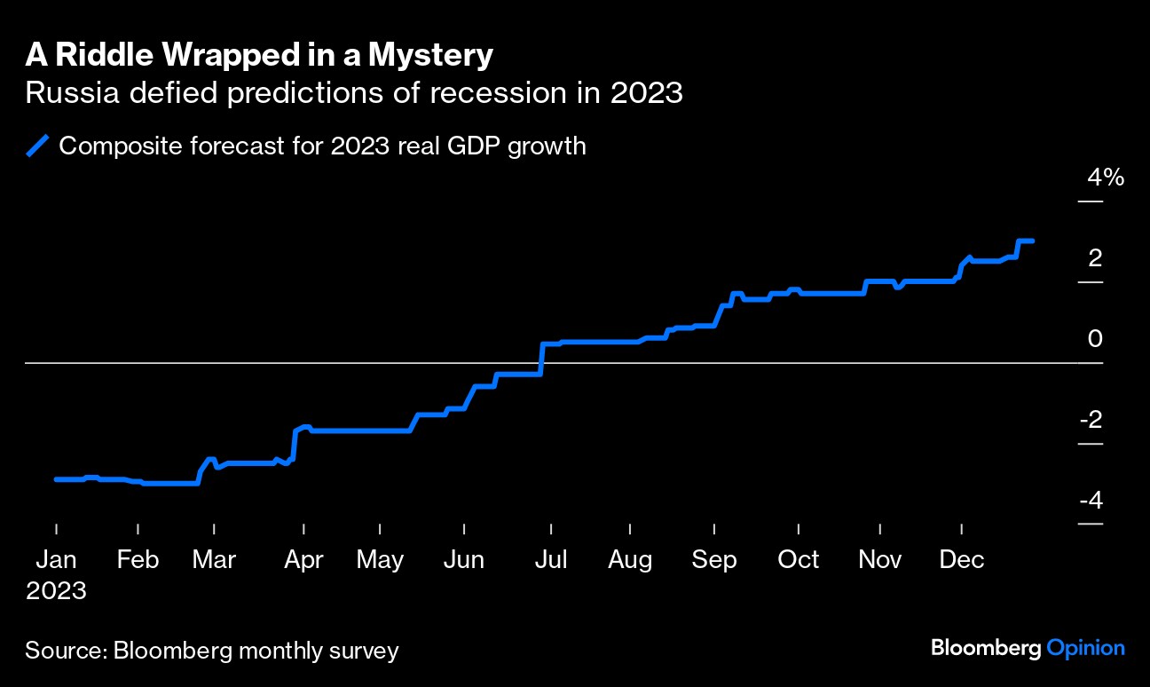 (Bloomberg Opinion) -- Vladimir Putin wants the world to believe that Russia's economy is doing fine, and that he has the wherewithal to prosecute the war in Ukraine indefinitely.