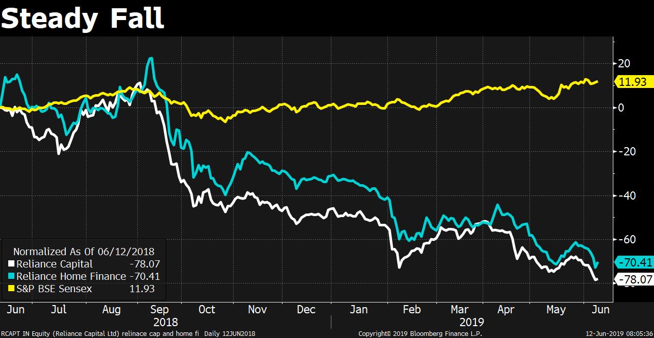 Shares of Reliance Capital have tumbled 59.2 percent this year, compared with an 11.2 percent gain in the benchmark S&P BSE Sensex index. Reliance Home Finance's shares declined 70 percent during the same period.