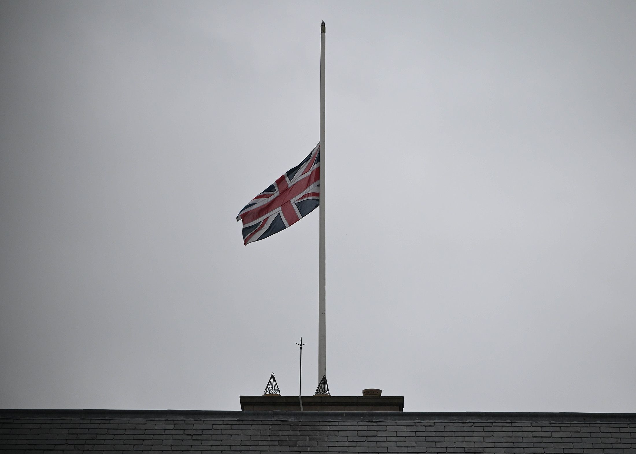 The Union Jack is seen at half mast at Hillsborough castle.(Photo by Charles McQuillan/Getty Images)