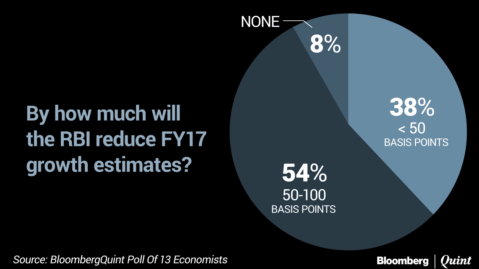 Just over half of the respondents in BloombergQuint's poll expect the RBI to revise its growth forecast for the year downward by 50-100 basis points. It currently stands at 7.6 percent.