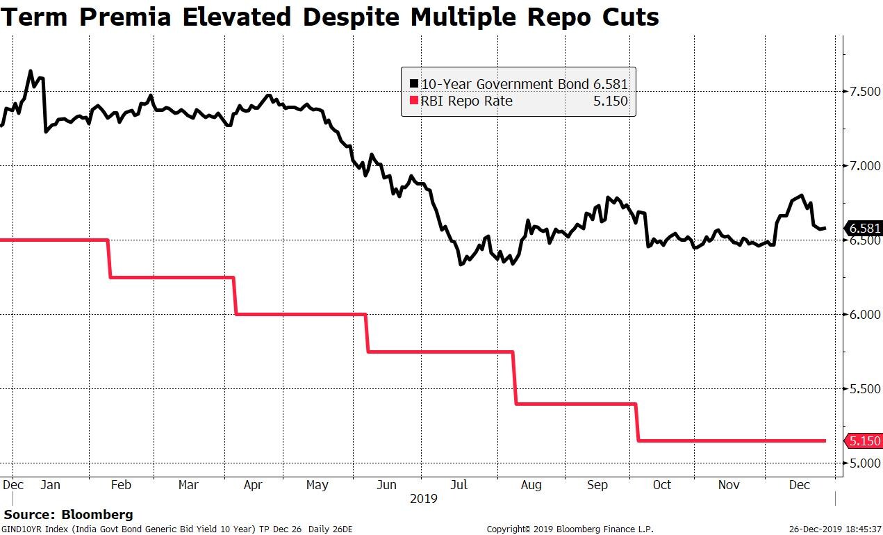 The term premia, which represents the additional interest that must be paid to borrow longer-term money, has remained elevated in the last few months despite several cuts in the repo rate by the RBI's Monetary Policy Committee.