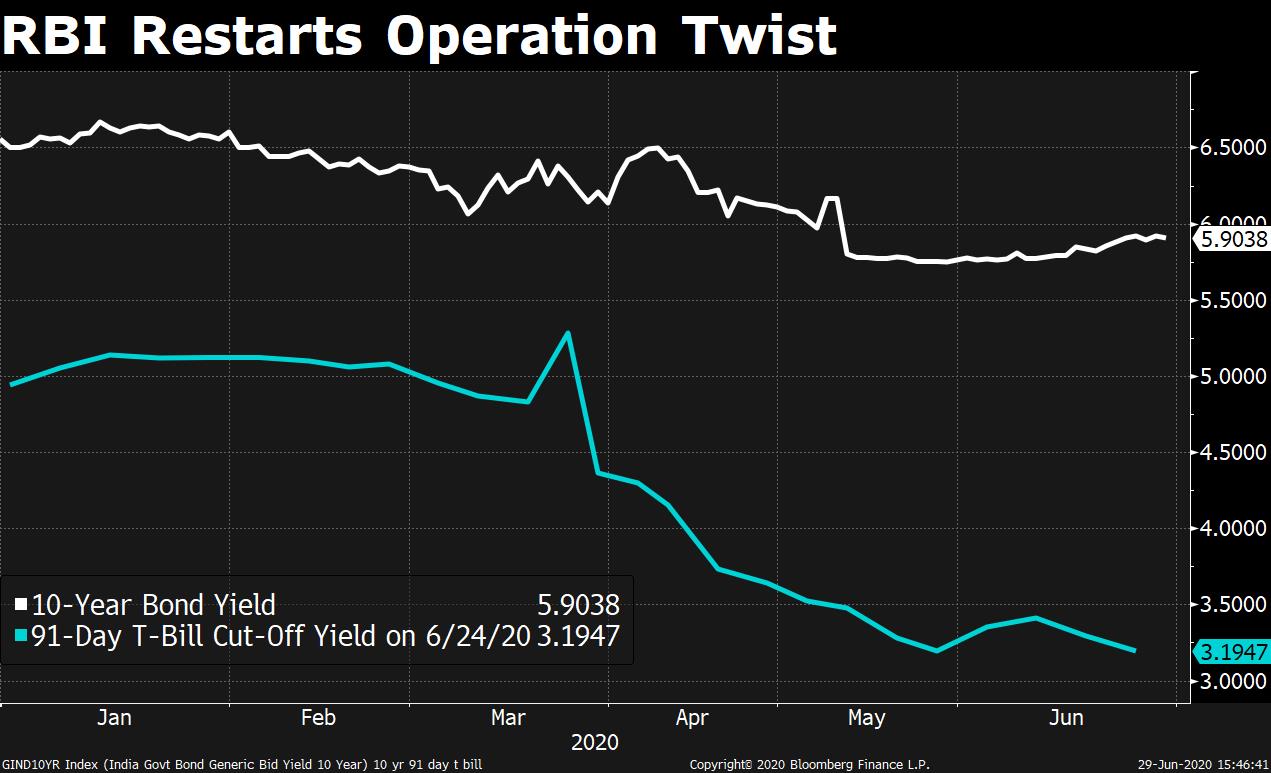 The RBI will buy Rs 10,000 crore in longer-dated government bonds, while selling an equivalent amount in shorter-dated treasury bills, the central bank said on Monday. The auction will be conducted on July 2.