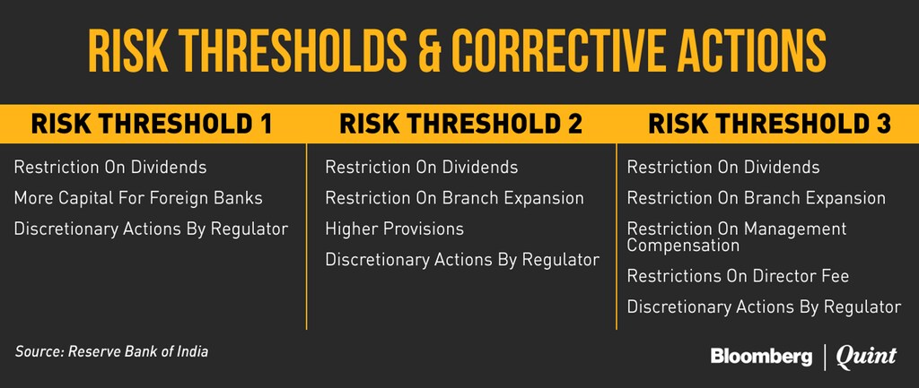 Banks that fall in the second risk category may be asked to curtail dividends and branch expansion, according to the RBI's guidelines. They may also be asked to make higher provisions, said the rules released by RBI earlier this month.