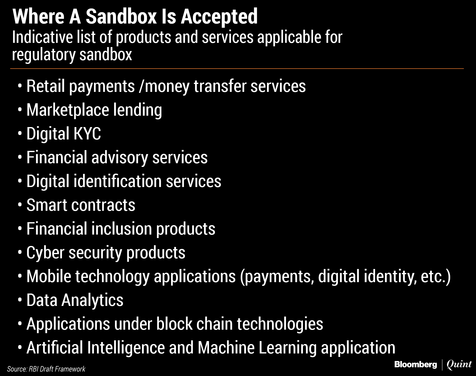 The Reserve Bank of India has proposed to set up a regulatory sandbox for financial services providers and technology companies to live-test new products in segments such as retail payments, money transfer, data analytics and artificial intelligence, among others, before they are launched in the broader market.