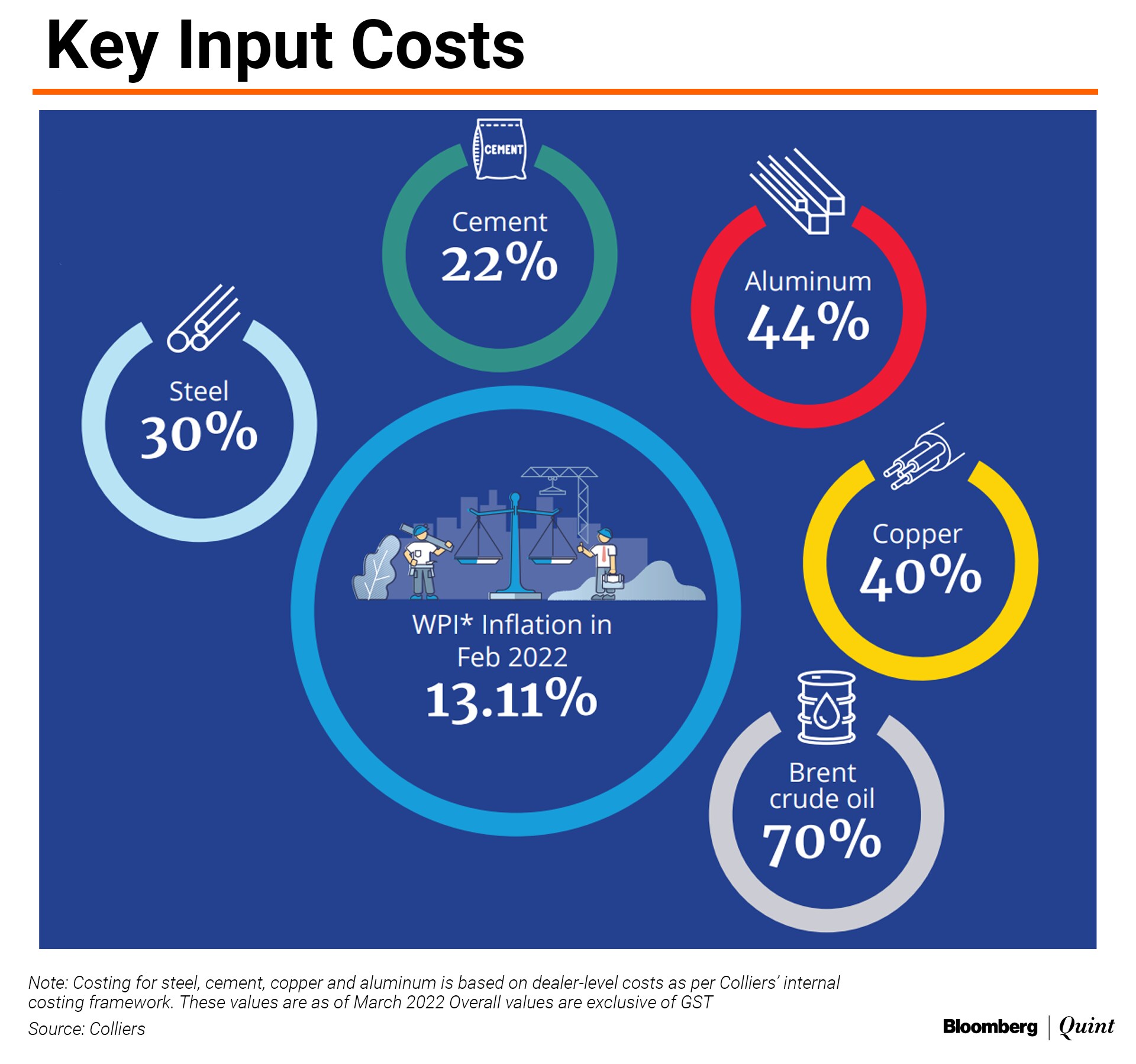 Under-construction projects are likely to face increased pressure from rising input costs. That's likely to impact timely delivery of projects, especially if these concerns persist, Colliers said.