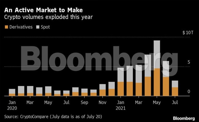 He's a small-time player in the industry, which overall now sees hundreds of billions of dollars changing hands every day. Chicago trading firms like Jump Trading and Tower Research dove in a few years ago, and transplants from the likes of Goldman Sachs, Susquehanna International Group and Jane Street are increasingly a common presence. Bitcoin has rallied around 230 per cent over the past year to trade near $38,600 on Thursday.