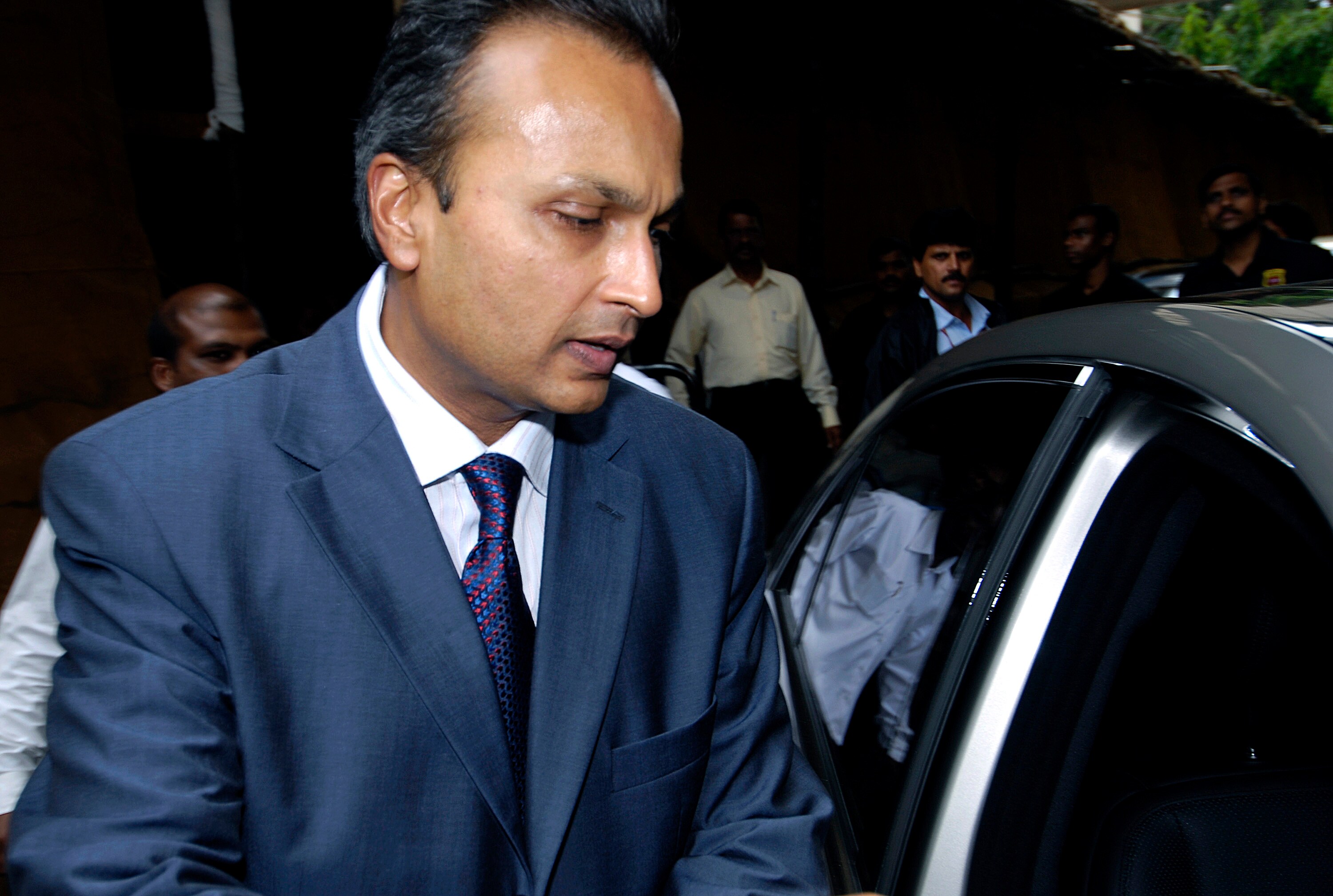 Anil Ambani, chairman of Reliance Capital Ltd., leaves after the company’s annual shareholders meeting in Mumbai (Photographer: Abhijit Bhatlekar/Bloomberg News)