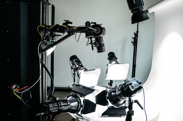 A camera and lighting set up at the Square Photo Studio in Brooklyn. (Photographer: Jeenah Moon/Bloomberg)