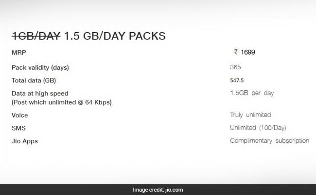 Subscribers will get high speed data of 547.5 GBs with a daily limit of 1.5 GBs over the entire validity period, according to Reliance Jio.