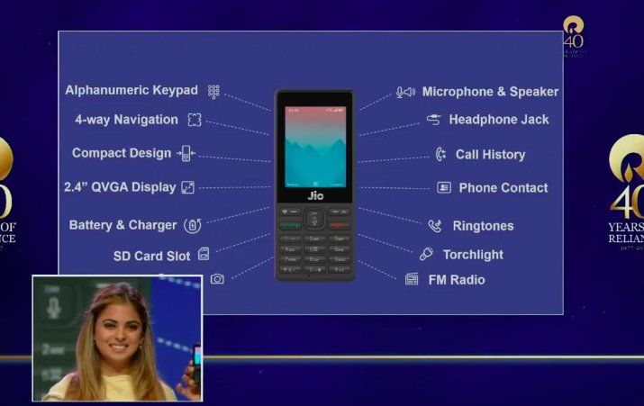 Reliance's JioPhone isn't a conventional feature phone though. It will support 4G services, including Jio's free voice calling, along with some advanced features like near-field communication, voice commands, web browsing and pre-loaded Jio applications. More interestingly, Ambani said that the phone is capable of casting content on all types of television sets through a cable. It will feature a distress button too for emergency.