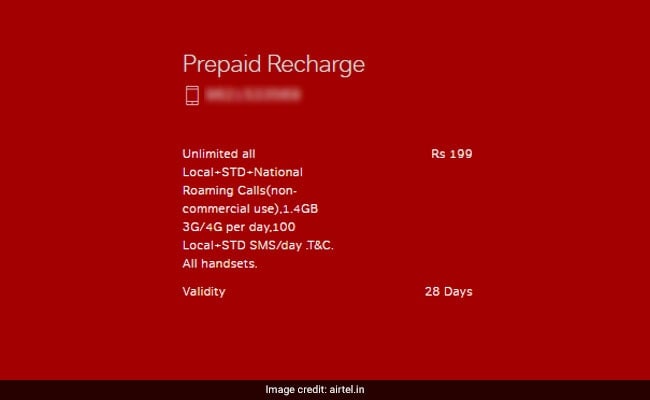 Airtel's prepaid recharge plan priced at Rs 199
