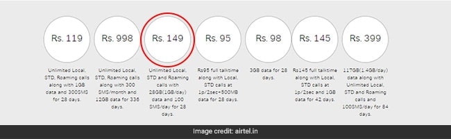 Airtel's prepaid recharge plan of Rs 149