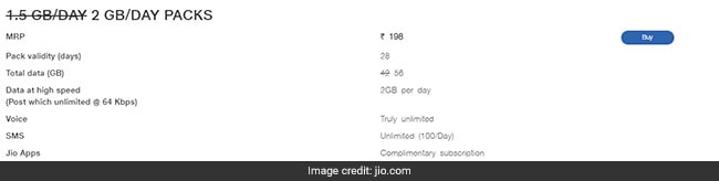Reliance Jio prepaid recharge plan of Rs 198